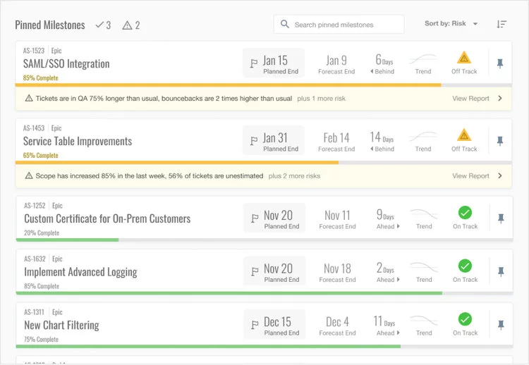 Resource planning: Get a better understanding of how well engineering resources are allocated, visualize financial costs, and have more control over the progress of key initiatives.