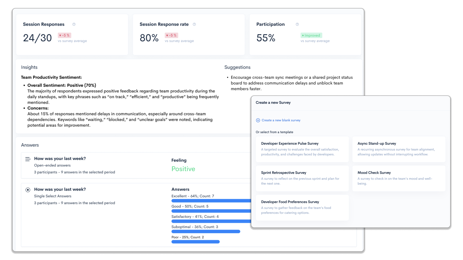 Boost morale and drive performance by understanding developers’ needs. Retain top talent and elevate team culture through actionable insights into their experience.